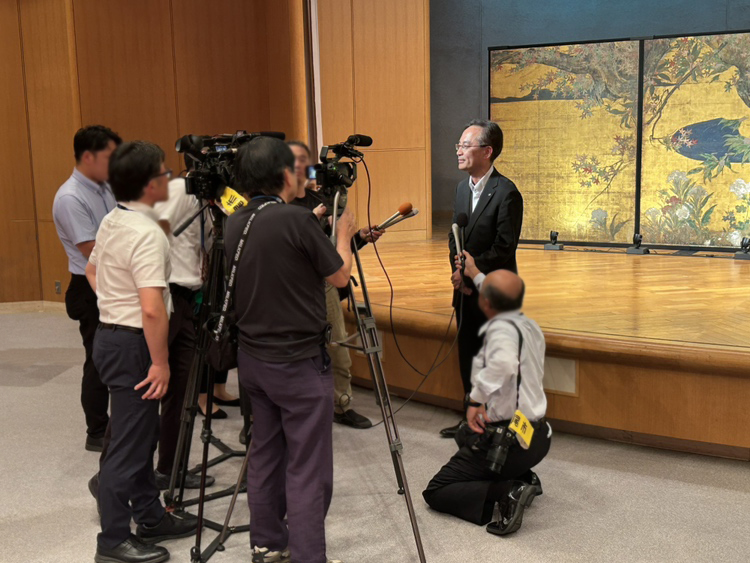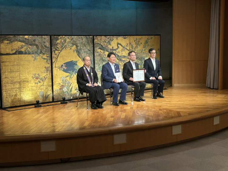 キヤノン株式会社(以下、キヤノン)と特定非営利活動法人 京都文化協会(以下、京都文化協会)は、「綴プロジェクト」(正式名称:文化財未来継承プロジェクト)の第17期作品として制作した、京都・真言宗智山派 総本山智積院(以下、総本山智積院)所蔵の国宝「楓図」(長谷川等伯筆)の高精細複製品を、能登半島地震・奥能登豪雨の復興支援として、長谷川等伯の生まれ故郷である石川県七尾市に寄贈しました。寄贈作品は、石川県七尾美術館での展示のほか、七尾市内の小中学校での訪問授業などで広く活用される予定です。